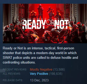 Despite קמפיין review bombing שהתחיל ב־26 ביוני, “Ready or Not” מצליח למקסם עניין ולשחרר נתוני השקה מרשימים ב־Steam וב־PlayStation. נראה שפעם נוספת – פרסום שלילי הוא פרסום. עכשיו מחכים להשקה ב־15 ביולי 2025 על קונסולות, אך על ה־PC – המשחק כבר מלך.